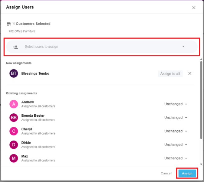 4. Choose the user you wish to assign and click Assign at the bottom-right: