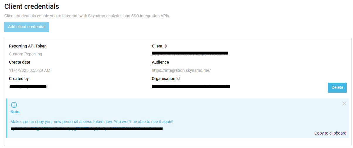 Give your Reporting API token a Name and Description (what you will be using it for, perhaps) and select Add:
