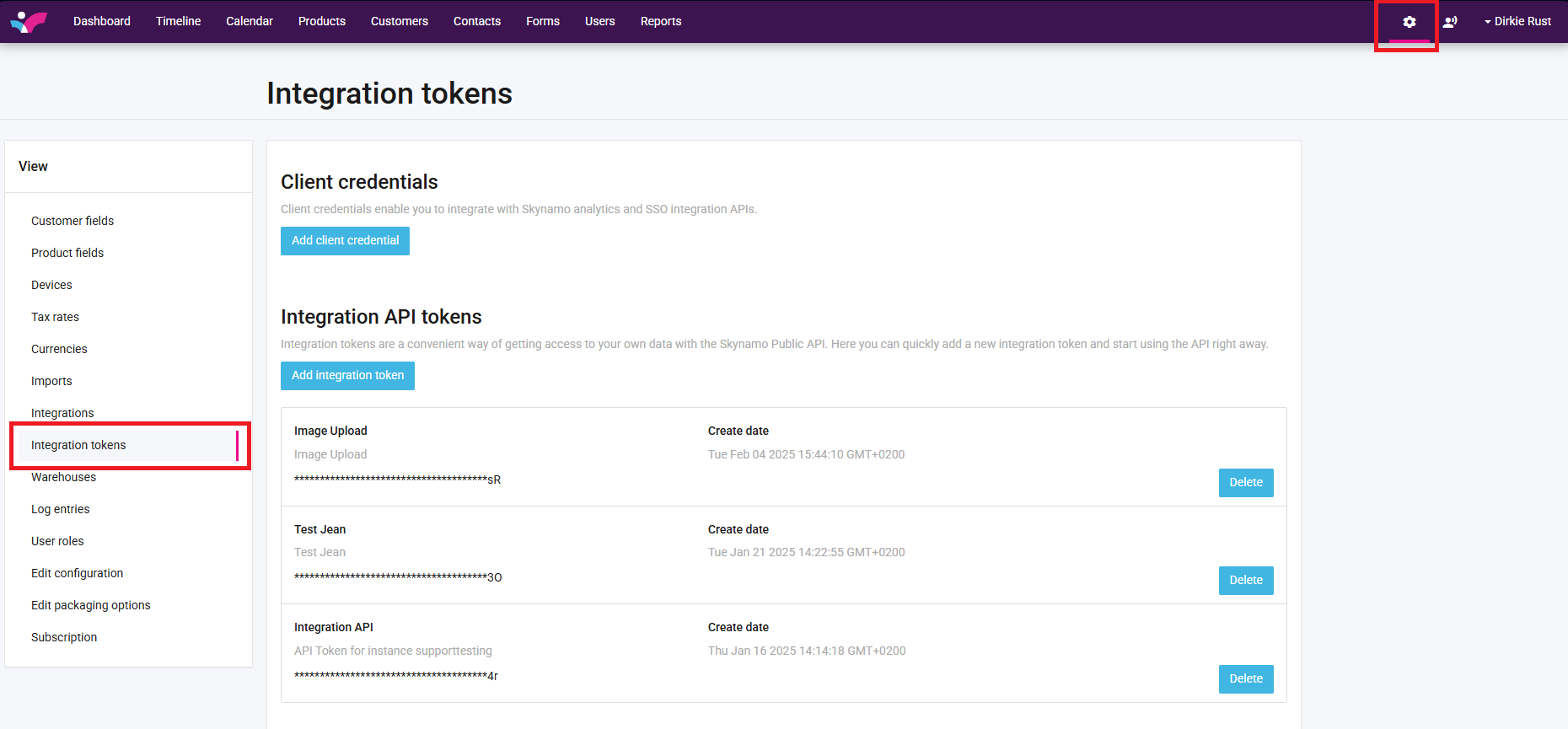 Navigate to your Settings, and select Integration Tokens on the view Panel: