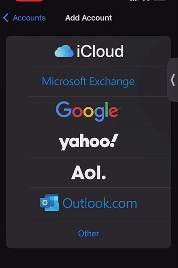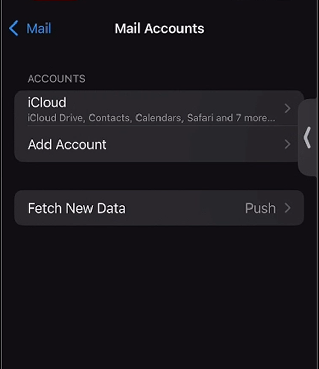 3. Choose to configure your iCloud account or select "Add Account" and log into another email account
